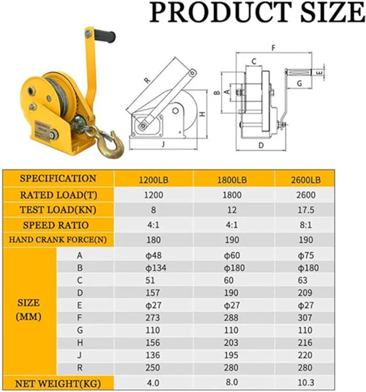 เรามีขนาดโหลดกระแสหลัก 1200 ปอนด์, 1800 ปอนด์ และ 2600 ปอนด์เพื่อให้ตรงกับเส้นผ่านศูนย์กลางของเชือก ระบบเบรกอันทรงพลังช่วยให้คุณควบคุมการยกและลงของหนักได้อย่างแม่นยำ ช่วยให้คุณวางของหนักได้อย่างช้าๆ และราบรื่น โดยไม่เสี่ยงต่อการล้มกะทันหัน