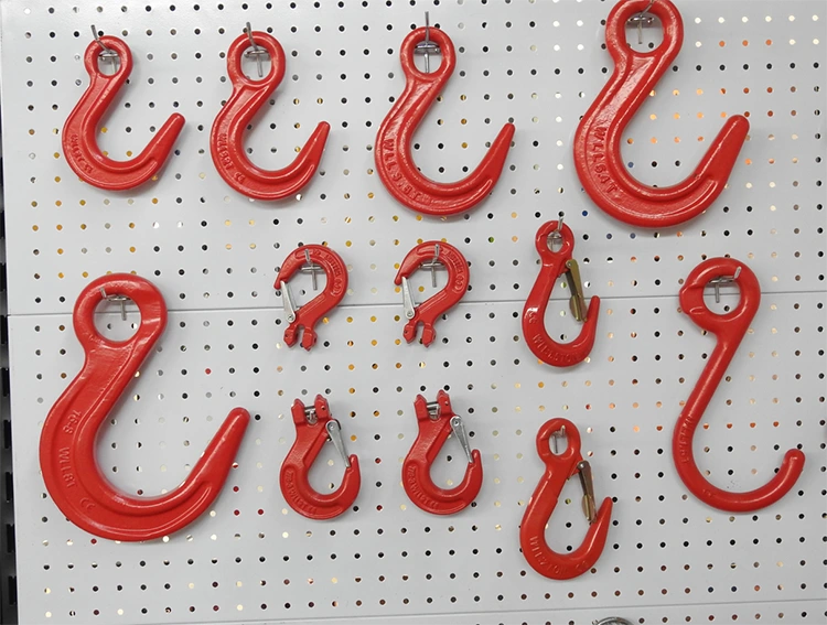 ตะขอตีขึ้นรูป: ผลิตจากโลหะผสมเหล็กคุณภาพสูงตีขึ้นรูปมีโครงสร้างไฟเบอร์ มีความแข็งแรงสูง และมีคุณสมบัติความเหนียวที่ดี ใช้กันอย่างแพร่หลายในสถานการณ์ที่มีน้ำหนักมากและมีงานยกและยกที่มีความปลอดภัยสูง