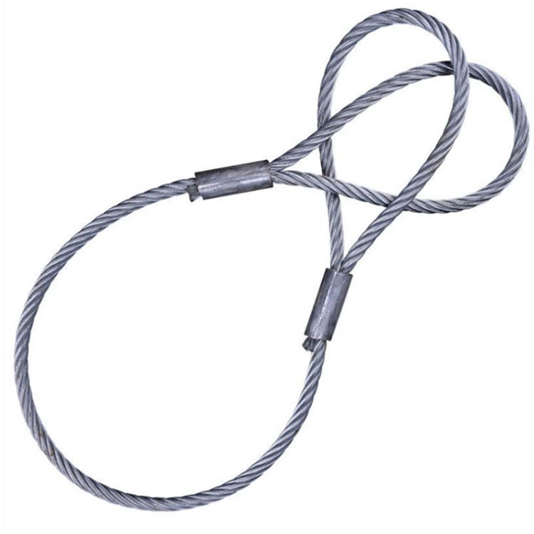 กดปลายทั้งสองของเชือกลวดเหล็กพร้อมกับปลอกเพื่อสร้างห่วงต่อเนื่อง นี่เป็นประเภทที่ใช้บ่อยที่สุดและมีการใช้งานที่หลากหลายมาก